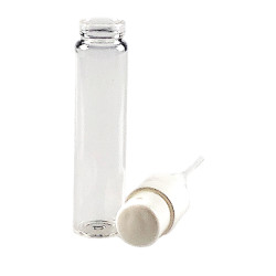 Flacon échantillon en verre blanc type 1 d'une capacité de 3 ML. Chaque flacon est équipé d’une pompe spray blanc à clipser
